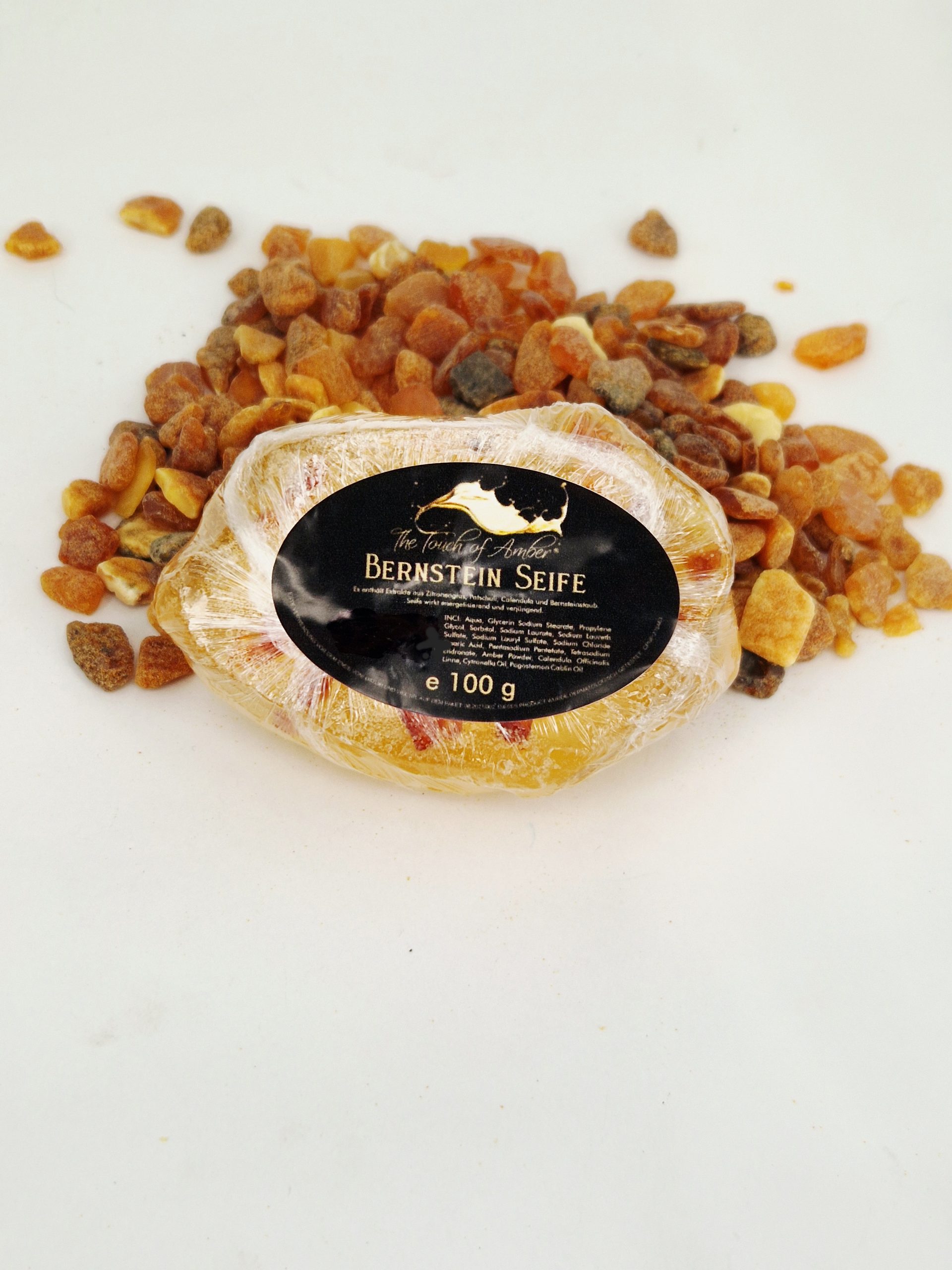 Hochwertige Naturseife mit Zugabe von Bernsteinpulver (antiseptisch) , Calendula und dezent duftendem Cytronella Öl
